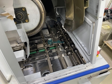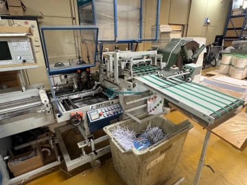 This fully automatic line is designed for efficient production of ring binders according to customer specifications. The machine is equipped with multiple processing stations and a Fanuc PLC control with touchscreen interface.
