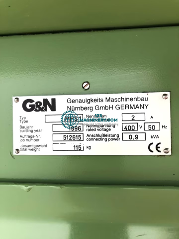G&N Kugelmüller MPS 1 Topfschleifmaschine-Spindeldrehzahl 3150 U/min-Schleifhöhe über Magnet 130mm-Magnetplatte 200x100mm-Seitliche Schleifscheibenabzieheinrichtung-Feinzustellung-Baujahr 1996-Antriebsmotor 0,6KW-Maschinenumhausung-Gepflegter OriginalzustandAbmaße:LxBxH 0,8x0,7x1,6 Meter / Gewicht 150Kg
