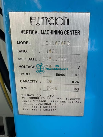 Vertikalbearbeitungszentrum / EUMACH MC 1050 P-CE- Kennung-Baujahr 1999-Heidenhain 426-Vierte Achse NIKKEN CNC 170 ZA / programmierbar direkt über die Steuerung-Ölkühler-Komplette Dokumentation-KOMPLETTE TECHNISCHE DATEN - SIEHE FOTOSAbmaße: LxBxH 2,8x3,45x2,8 Meter / Gewicht 6500Kg