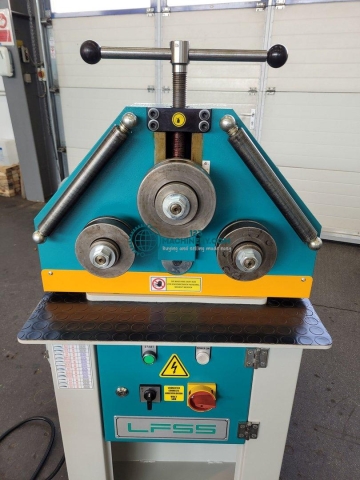 Shaft diameter: 50Rolls diameter: 155 mmDriven rolls: 2Motor power: 1.5 kWSpeed: 4 m/minFlat steel vertical position (section / min. diameter): 60x10 mm / 500 mm, 40x10 mm / 400 mmFlat steel horizontal position (section / min. diameter): 100x15 mm / 450 mm, 60 x 10 mm / 350 mmSquare bar (section / min. diameter): 35x35 mm / 900 mm, 20x20 mm / 300 mmRound bar (section / min. diameter): Ø 35 mm / 600 mm, Ø 30 mm / 400 mmTube (section / min. diameter): Ø 70x2 mm / 1.000 mm, Ø 30x2 mm / 500 mm, 2"x2,9 mm / 1.000 mm, 1"x2,3 mm / 350 mmForm tube vertical position (Querschnitt / min. Durchmesser): 70x30x2 mm / 1.200 mm, 50x40x3 mm / 1.200 mmForm tube square (section / min. diameter): 50x50x3 mm / 1.700 mm, 40x40x3 mm / 600 mmAngle leg outside (Querschnitt / min. Durchmesser): 50x50x5 mm / 800 mm, 40x40x5 mm / 600 mmAngle leg inside (section / min. diameter): 50x50x6 mm / 1.000 mm, 30x30x3 mm / 500 mmLength: 1050 mmWidth: 750 mmHeight: 1450 mmWeight: 390 kg