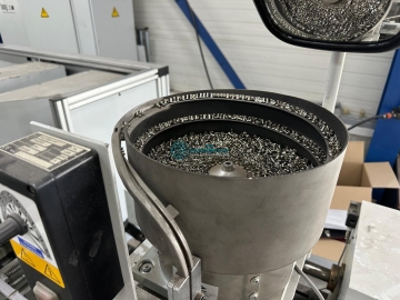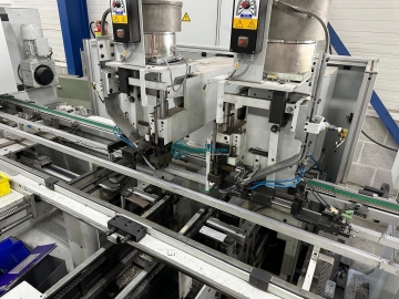 This fully automatic line is designed for efficient production of ring binders according to customer specifications. The machine is equipped with multiple processing stations and a Fanuc PLC control with touchscreen interface.