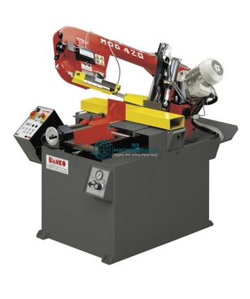 Saw frame: Pivot frameBand dimensions: 4160x34x1,1 mmBand speed continous: 15 - 120 m/minCutting capacity 0° round: 320 mmCutting capacity 0° square: 320 mmCutting capacity 0° flat: 450x320 mmCutting capacity 30°: round 320 mm, square 320 mm, rectangular 380x320 mmCutting capacity 45°: round 320 mm, square 320 mm, rectangular 330x320 mmCutting capacity - 30°: round 320 mm, square 320 mm, rectangular 380x320 mmCutting capacity - 45°: round 320 mm, square 300 mm, rectangular 340x320 mmCutting capacity - 60°: round 230 mm, square 220 mm, rectangular 230x220 mmWorking height: 860 mmHydraulic motor: 0.37 kWMotor: 2.2 kWCoolant pump motor: 0.12 kWLength: 2230 mmWidth: 1150 mmHeight: 2140 mmWeight: 1030 kg