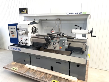 Leit & Zugspindeldrehmaschine WEILER COMMODOR 180 GSD / Neu -Unbenutzt-Ausstellungsmaschine / Null Betriebsstunden-CE-Kennung-3 - Achs Digitalanzeige-Spitzenweite 1000mm-Spitzenhöhe 180mm-Spindeldurchlass 56mm-Umlaufdurchmesser über Bett 380mm-Umlaufdurchmesser über Planschieber 215mm-Drehzahlbereich / Getriebe 25-2000 U/min-Automatische Längs / Planvorschübe-Gewinde / Zoll / Metrisch / Diametral-Reitstock / Pinolenkegel MK 4-Pinolenhub 150mm-Kühlmitteleinrichtung-Multifix mit Einsatz-Dreibackenfutter 200mm-Arbeitsleuchte-Spänerückwand-DokumentationAbmaße:LxBxH 2,6x1,6x1,7 Meter / Gewicht 2000Kg