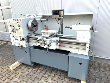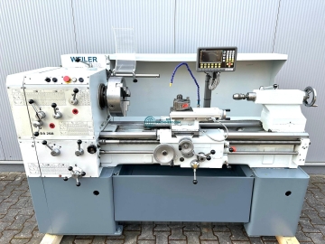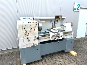 Leit + Zugspindeldrehmaschine WEILER DA 260x1000-Digitalanzeige - Drei Achsen " NEU"-Spitzenhöhe 260mm-Drehdurchmesser über Bett 535mm-Drehdurchmesser über Planschieber 345mm-Spitzenweite 1000mm-Spindelbohrung 71mm-Drehzahlbereich 33 - 1500 U/min-12 x Spindeldrehzahlen über Getriebe-Automatische Längs / Planvorschübe-Gewindeschneiden / Metrisch / Zoll / Diametral-Reitstock MK 4-NEUE DREI-ACHSDIGITALANZEIGE-Antriebsleistung 7,5 KW-Planspindelmutter "NEU"-Multifixgrundhalter mit Einsatz-Dreibackenfutter 350mm-2 x Not - Aus- elektrischer Futterschutz "NEU"-Spänerückwand-Kühlmitteleinrichtung-Bohrfutter-DokumentationAbmaße:LxBxH 2,7x1,5 x1,7 Meter / Gewicht 1700Kg