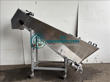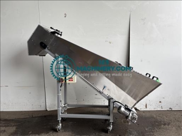 Breitner flighted elevator conveyor Stainless, 100Kg hopper, elevates from 300mm to 1800mm, belt width 150mm, overall length 2100mm 3Ph